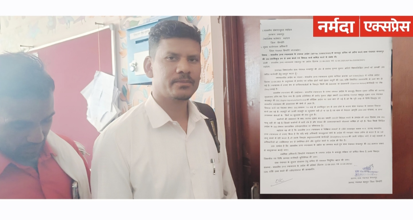 ब्रेकिंग न्यूज़ समीक्षा बैठकों और कागजी रिपोर्टों तक सीमित विकास कार्य, जमीनी स्तर पर नहीं दिख रहा असर जनसमस्याओं से परेशान युवा AAP में शामिल: चंदवाही में बढ़ी राजनीतिक हलचल March 25, 2026 टंकी खड़ी, पाइप बिछे…पर पानी गायब: डोंढा में नल-जल योजना फेल March 25, 2026 लात-घूंसों से पीटकर हत्या: आरोपी को उम्रकैद, 2 हजार जुर्माना March 25, 2026 कैंची से हत्या करने वाले आरोपी को उम्रकैद, 20 हजार जुर्माना March 25, 2026 हाईकोर्ट के निर्देशों की अनदेखी का आरोप: कंचनपुर पंचायत में DSC बंद, सचिव अटैच—काम प्रभावित, सरपंच ने कलेक्टर से लगाई गुहार March 25, 2026 PHC कोहानी देवरी में तोड़फोड़ व डॉक्टर को धमकी, SDM से की शिकायत,SDM ने मामले में दिया कार्यवाही का भरोसा March 24, 2026 बिलगड़ा बांध के पास घर में लगी भीषण आग, सामान जलकर खाक March 23, 2026 Advertisement डिंडौरी के खैरदा में जुआ खेलते शहपुरा, गाड़ासरई के जुआरी पकड़े गए..कोतवाली पुलिस ने खैरदा में जुआं फड़ में छापा मारकर की कार्यवाही March 22, 2026 सीएम हेल्पलाइन ग्रेडिंग में डिंडोरी पुलिस अव्वल—A ग्रेड के साथ प्रदेश में 12वां स्थान, बालाघाट जोन में मिला A ग्रेड March 21, 2026 Crime News View More लात-घूंसों से पीटकर हत्या: आरोपी को उम्रकैद, 2 हजार जुर्माना March 25, 2026 कैंची से हत्या करने वाले आरोपी को उम्रकैद, 20 हजार जुर्माना March 25, 2026 शहपुरा कांड:महिला की हत्या व नाबालिग से दुष्कर्म का आरोपी कटनी से गिरफ्तार, पुलिस पैदल ले गई न्यायालय तक March 11, 2026 नाबालिग बालिका से सामूहिक दुष्कर्म, दो आरोपी गिरफ्तार November 28, 2025 राजनीति View More कोर्ट न्यूज View More जिला अस्पताल डिण्डौरी में ऑक्सीजन पाइप चोरी करने वाले दो आरोपी दोषी, कोर्ट ने सुनाई सजा Kashi Agrawal | August 30, 2025 डिण्डौरी। जिला अस्पताल डिण्डौरी में ऑक्सीजन सप्लाई पाइपलाइन काटकर चोरी करने वाले आरोपियों को न्यायालय ... संपूर्णता अभियान सम्मान समारोह एवं आकांक्षा हाट समापन समारोह का भव्य आयोजन संपन्न August 3, 2025 बंदर मारने के प्रयासरत आरोपियों की जमानत निरस्त July 24, 2025 मध्यप्रदेश View More हाईकोर्ट के निर्देशों की अनदेखी का आरोप: कंचनपुर पंचायत में DSC बंद, सचिव अटैच—काम प्रभावित, सरपंच ने कलेक्टर से लगाई गुहार March 25, 2026 डिंडौरी के खैरदा में जुआ खेलते शहपुरा, गाड़ासरई के जुआरी पकड़े गए..कोतवाली पुलिस ने खैरदा में जुआं फड़ में छापा मारकर की कार्यवाही March 22, 2026 खरमेर डेम घाट से जल गंगा संवर्धन अभियान की शुरुआत, जनप्रतिनिधियों ने किया श्रमदान March 19, 2026 कठौतिया सुड़गांव में गूंज रही भक्ति की ध्वनि, श्रीमद् देवी भागवत महापुराण का भव्य शुभारंभ March 19, 2026 अयोध्या श्रीराम मंदिर निर्माण की द्वितीय वर्षगांठ पर शहपुरा के श्रीराम मंदिर में कार्यक्रम व भंडारे का आयोजन January 22, 2026 Advertisement राज्य View More इंटरनेशनल न्यूज View More खेल विज्ञान View More 69वीं शालेय राज्य स्तरीय रग्बी स्पर्धा में डिंड