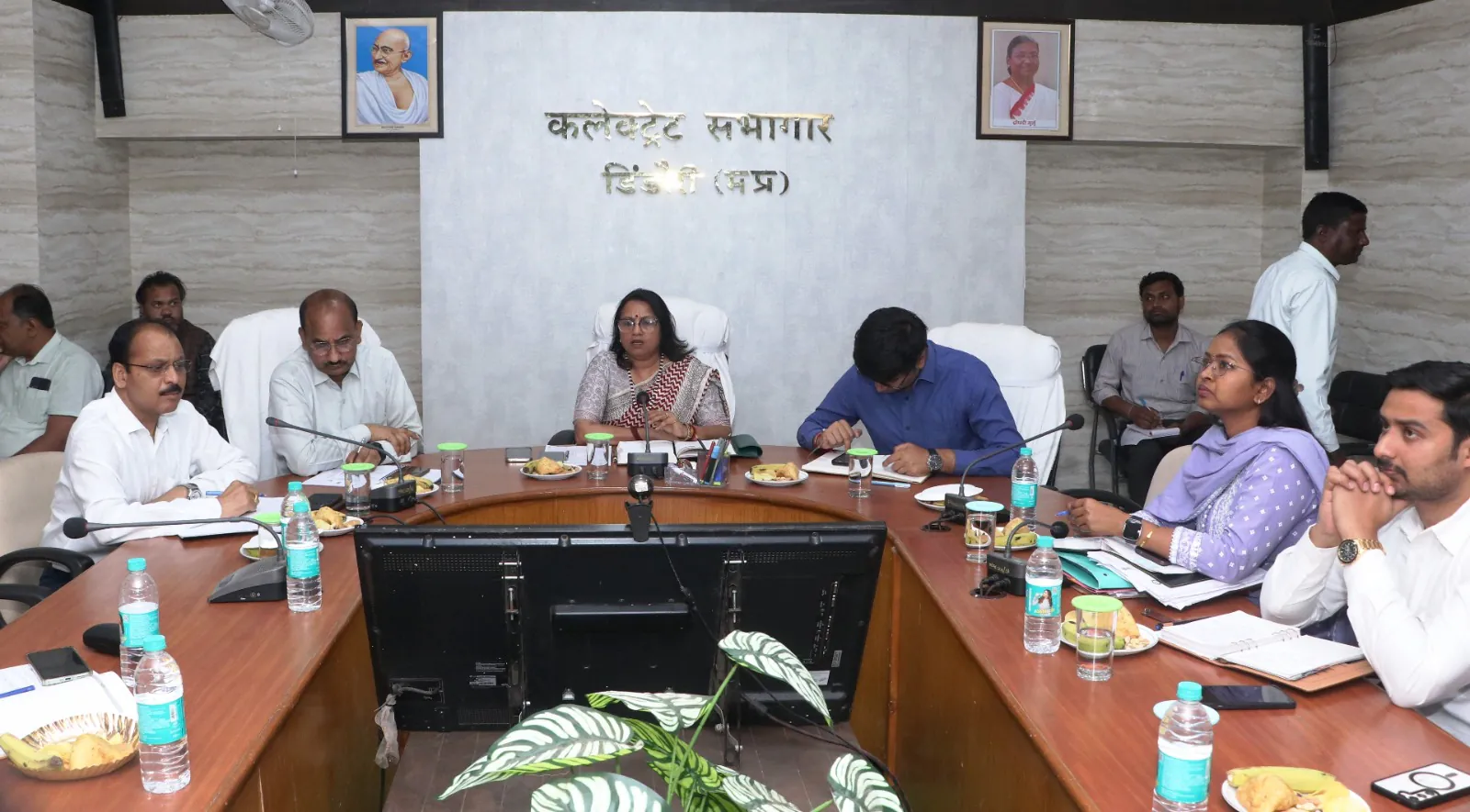 डिंडौरी : कलेक्टर श्रीमती अंजू पवन भदौरिया ने कलेक्ट्रेट सभाकक्ष में आयोजित समय-सीमा बैठक में जिले में संचालित विभिन्न शासकीय योजनाओं, विकास कार्यों एवं जनहित से जुड़े प्रकरणों की विस्तारपूर्वक समीक्षा की। बैठक में अपर कलेक्टर श्री जेपी यादव, सीईओ जिला पंचायत श्री दिव्यांशु चौधरी, अतिरिक्त सीईओ जिला पंचायत श्री पंकज जैन, एसडीएम डिंडौरी सुश्री भारती मेरावी, डिप्टी कलेक्टर श्री वैधनाथ वासनिक, डिप्टी कलेक्टर सुश्री प्रियांशी जैन, डिप्टी कलेक्टर श्री अक्षय डिगरसे, उद्योग प्रबंधक श्रीमती राधिका कुसरो, कार्यपालन यंत्री लोक निर्माण विभाग श्री मोहित सिंह, कृषि उपसंचालक सुश्री अभिलाषा चौरसिया, सहायक आयुक्त जनजातीय कार्य विभाग श्री राजेन्द्र कुमार जाटव, उपसंचालक पशुपालन श्री एचपी शुक्ला, खनिज अधिकारी श्री अशोक नागले सहित विभिन्न विभागों के अधिकारी उपस्थित रहे।