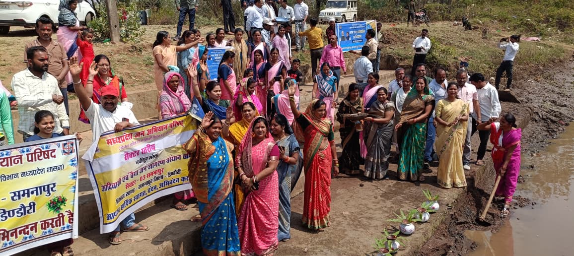 डिंडोरी। जल संरक्षण को जनआंदोलन बनाने के उद्देश्य से जनपद मुख्यालय समनापुर में 19 मार्च 2026 को जल गंगा संवर्धन अभियान का भव्य शुभारंभ किया गया। कार्यक्रम की शुरुआत खरमेर नदी डेम घाट पर जनप्रतिनिधियों, अधिकारियों एवं ग्रामीणों द्वारा श्रमदान कर गाद एवं मलवा हटाने से हुई।